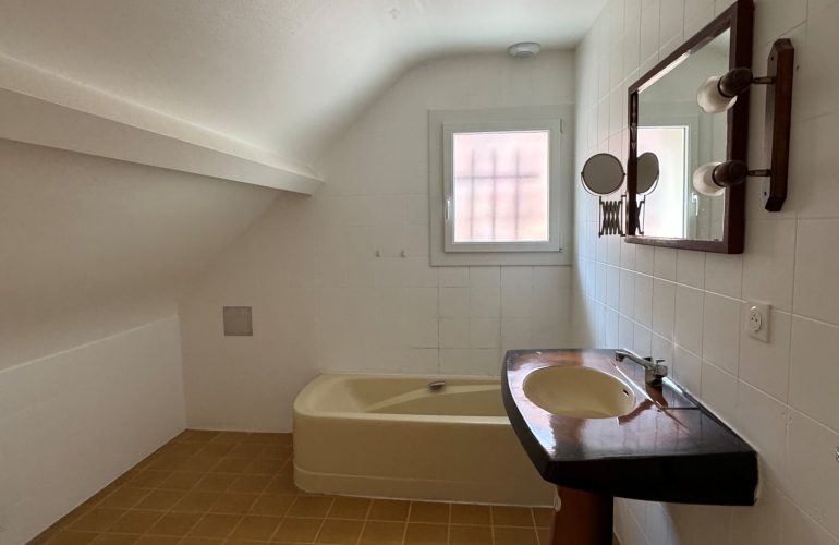 La Ferté St Aubin , rue du Général Leclerc, appartement/maison F3, 78 m2, (pas de jardin), comprenant au rez de chaussée : un séjour avec cheminée décorative, une cuisine aménagée + équipée (plaque vitro, four), un wc. A l’étage : 2 chambres, une salle de bains, un wc, un débarras.