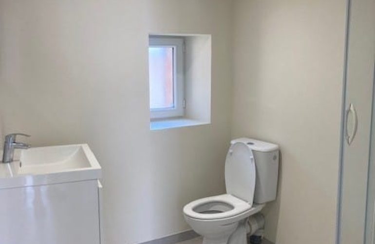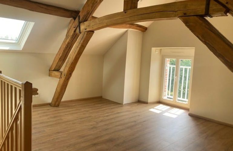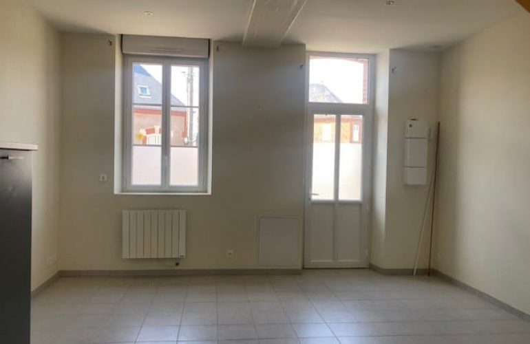 La Marolle en Sologne, appartement F1bis, 39 m2, rue de la Grotte, comprenant au rdc un séjour avec coin cuisine aménagé (+une plaque vitro), une salle d’eau avec wc. A l’étage une chambre mansardée ouverte. Place de parking extérieur sur le côté. Chauffage électrique et eau chaude par cumulus électrique. Eau et électricité à régler en plus du loyer. Disponible le 16 avril 2025