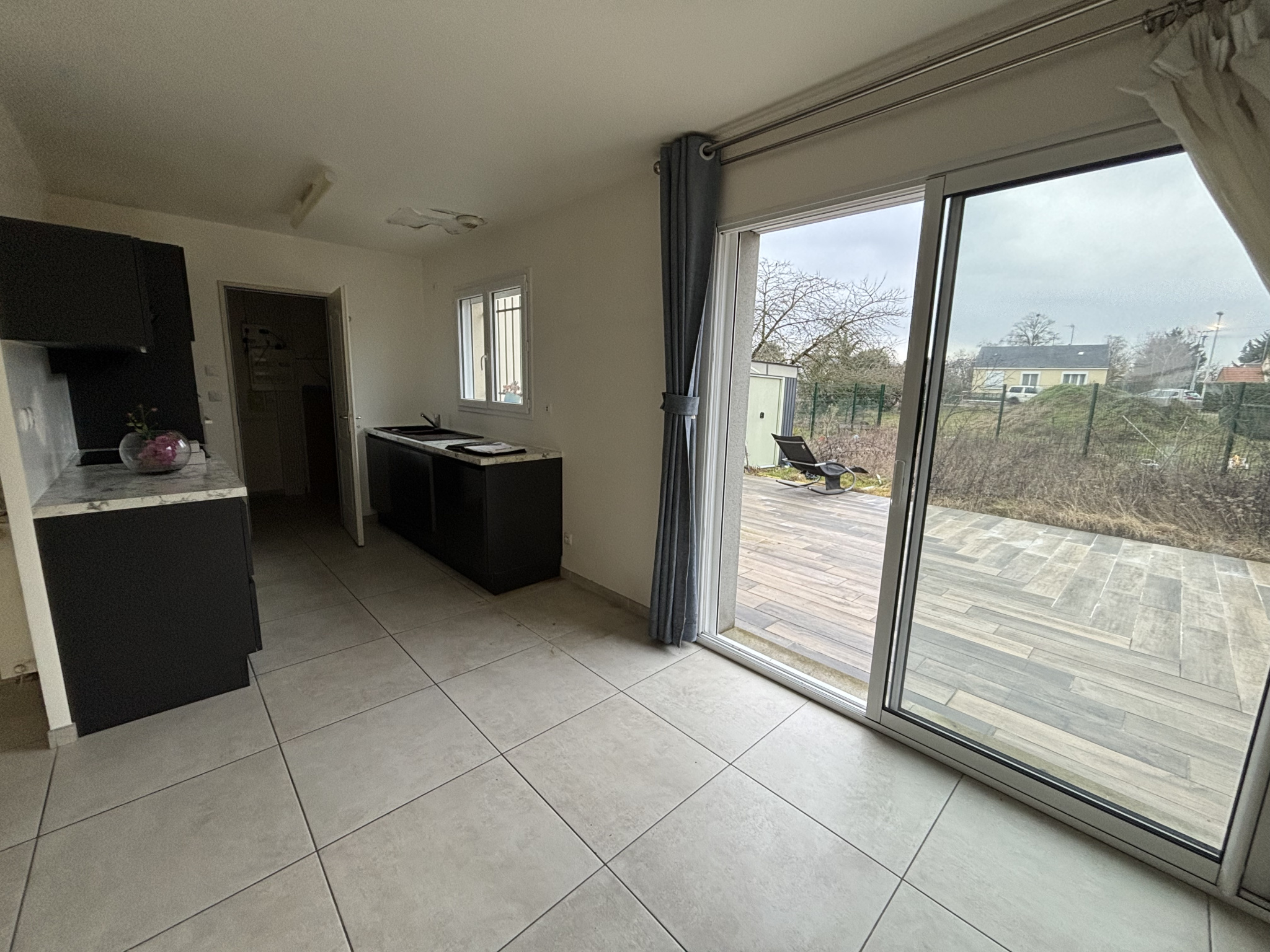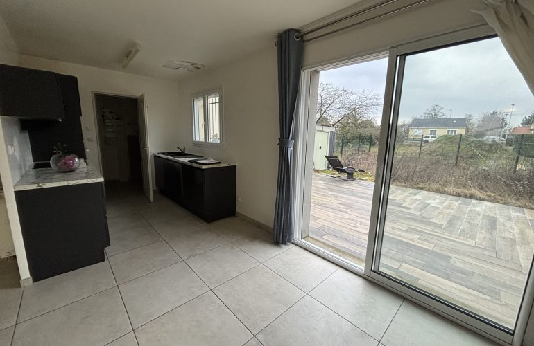 L’Agence Bannier vous propose à la location une maison de 101 m2 à Saran comprenant au rez-de-chaussée une entrée sur pièce principale, une cuisine équipée (plaques, four, hotte), une buanderie, une chambre, une salle d’eau et un WC, et au 1er étage trois chambres, une salle de bain et un WC séparé. La maison est équipée d’une climatisation réversible (froid/chaud), d’un chauffage au gaz individuel et d’un compteur d’eau individuel. Libre immédiatement, elle dispose d’un jardin de 100 m2 avec cabane de jardin et terrasse.