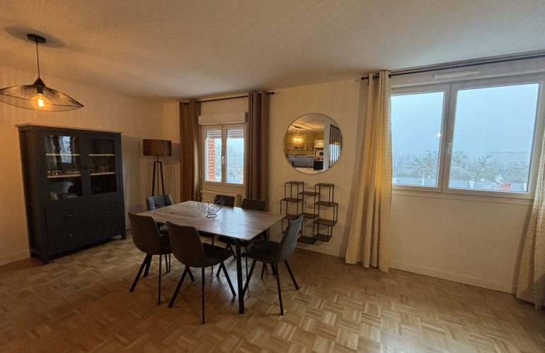 L’Agence Bannier vous propose à la location, en hypercentre d’Orléans, un appartement meublé de type F4. Il se compose d’une entrée donnant sur la pièce principale, d’une cuisine entièrement équipée (réfrigérateur, micro-ondes, hotte, lave-vaisselle, four, plaque électrique), d’une salle de bains avec machine à laver, ainsi que de trois chambres, dont une avec suite parentale.