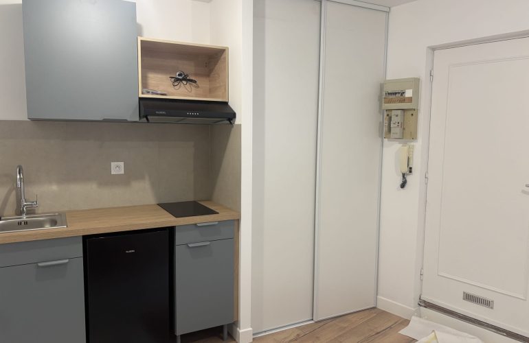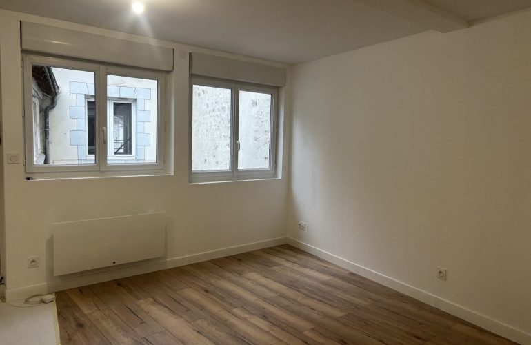 ORLEANS, RUE BANNIER – Studio de 26m2 en plein centre, proche toutes commodités, comprenant : entrée avec placard, pièce principale au calme avec coin cuisine équipée (plaques, frigo, hotte), salle d’eau et WC. Chauffage individuel électrique. Libre