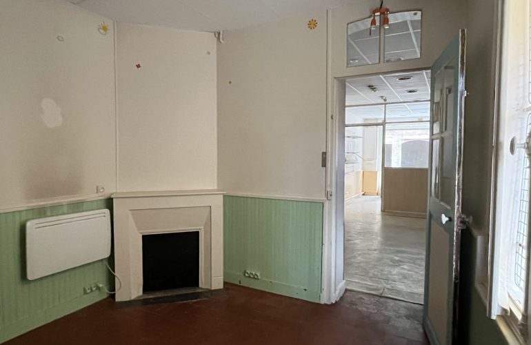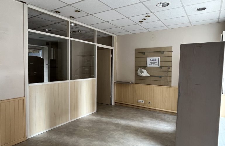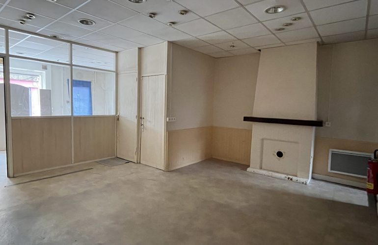 En centre ville, immeuble à usage de commerce d’une surface d’environ 110 m2 composé d’un rez de chaussée avec accueil, deux bureaux, une réserve et au 1er étage : deux pièces, une cuisine, une salle de bains, grenier au dessus. Un espace extérieur couvert et parking.