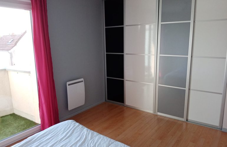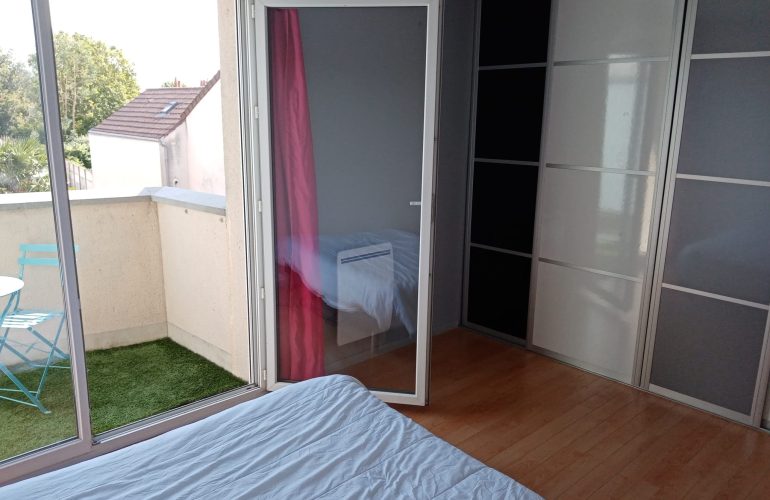Au sein d’une maison, colocation de 3 chambres, une chambre disponible avec dressing, salle de bains commune pour deux chambres et un balcon privatif.