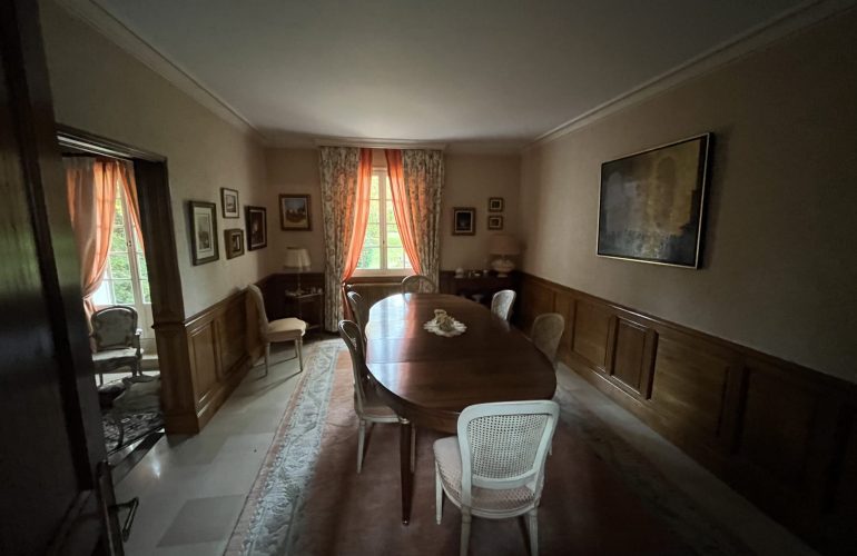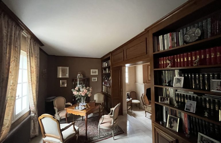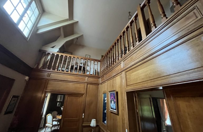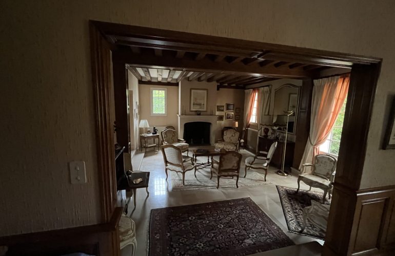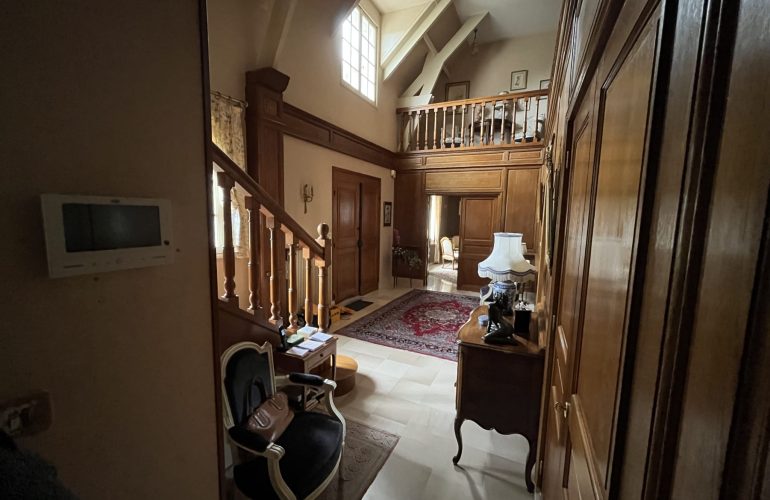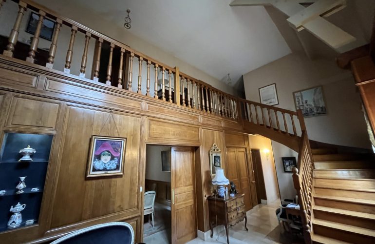 Belle maison traditionnelle de 275 M2, vaste hall d’entrée avec boiseries, salle a manger, séjour salon avec cheminée, cuisine aménagée, 2 arrières cuisines, bureau, cellier, garage double